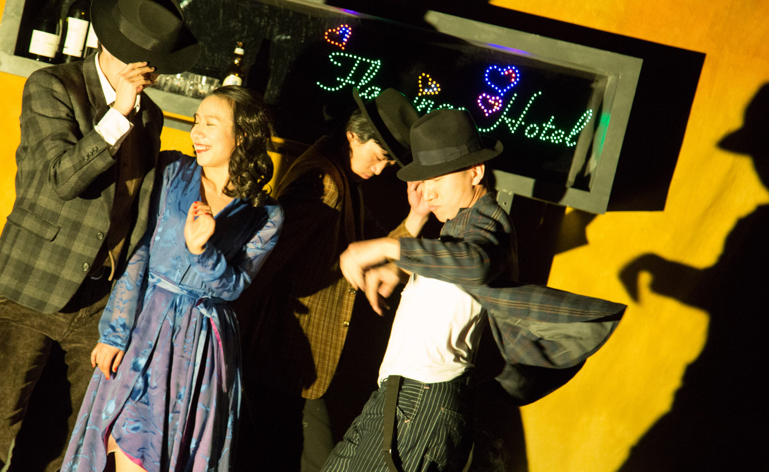 And so the narrative is played out through a fast paced, flowing series of dramatised scenes, stylised dance and vivacious jazz numbers, performed by the three men with Rat Pack panache.