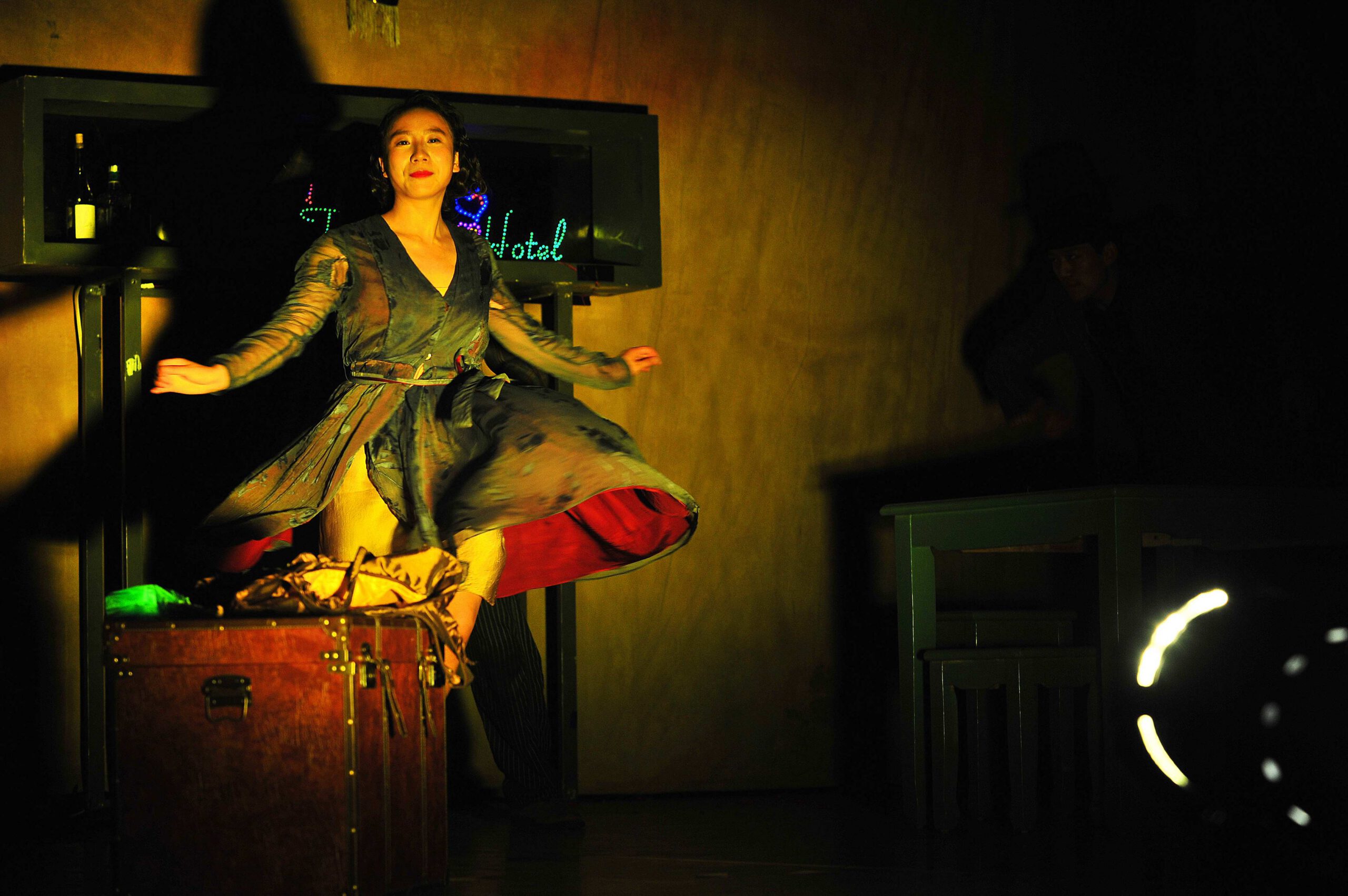 The cross-cultural expressionist style of theatre occasionally breaks down the fourth wall, creating a touch of spontaneity and humour. Like the star turn in a Music Hall, Mitch, (Fang Yiheng) steps forward to the microphone to sing the 1943 no. 1 hit, “Paper Doll” – a performance of pure magic.