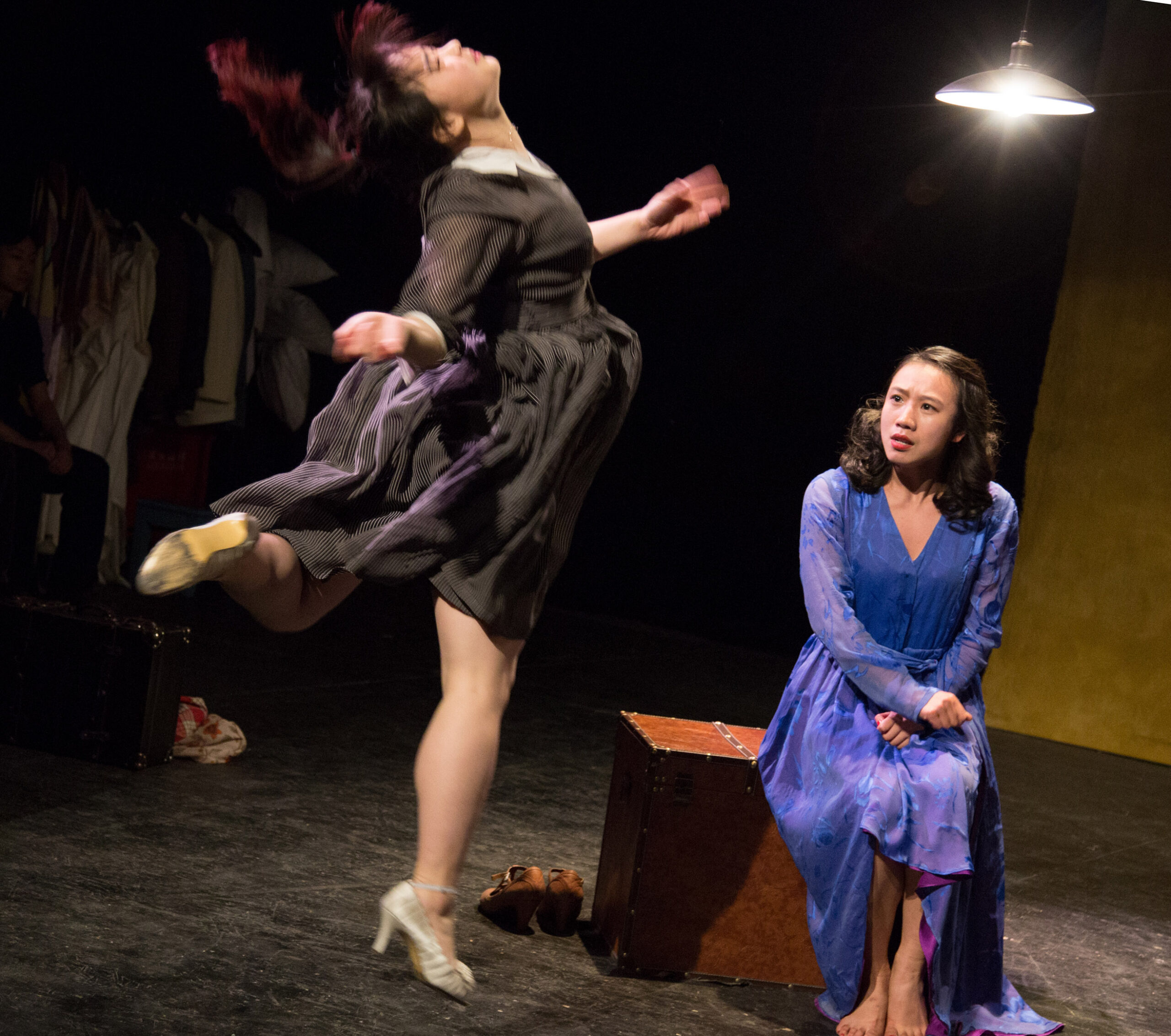 At her sister Stella’s house, there's a charming reunion – both rushing to embrace with open arms and girlish laughter. The glamorous socialite Blanche in her silk blue dress, and Stella, (delicately played by Xu Jinqian) in faded polka dot frock shows their contrasting lifestyles.